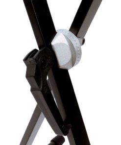 SOPORTE PARA TECLADO Soporte de teclado regulable en altura con tornillo de seguridad pasante con muelle. Aleacíón pintada de negro con pintura repelente y rmuy resistente. Medidas del travesaño 35 cm. Altura mínima 64 cm, altura máxima 98 cm. 6ud por caja)