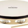 PANDERETA CON PARCHE Con sonajas de acero chapado en níquel plateado y con parche de plástico firmemente unidos a la pandereta, este instrumento ofrece un tono sutil y suave.