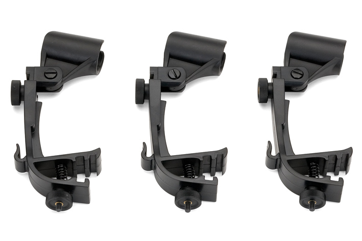 PINZA PARA MICRÓFONO PERCUSIÓN Soportes pinza para aros de batería para la mayor parte de micros de batería. Altura y orientación ajustable. Pack de 3 unidades.