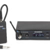 SISTEMA WIRELESS: GUITARRA Y BAJO Sistema inalámbrio para guitarra o bajo. Conjunto compuesto por receptor DIVERSITY y emisor tipo petaca para guitarra/bajo. Sincronización canales via infrarrojos. Incluye adaptador de alimentación para receptor.